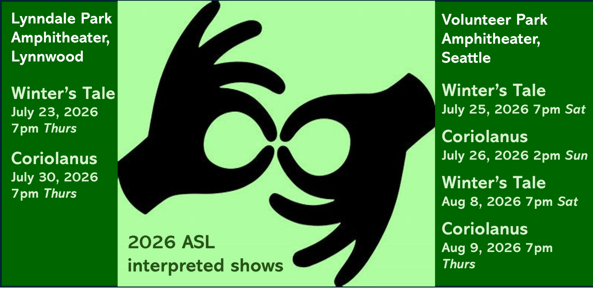 2026 ASL performances begin late July in Lynnwood at the beautiful Lynndale Park Amphitheater this year: