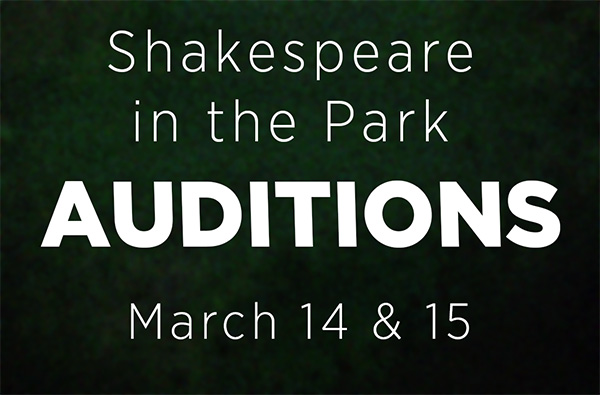 Auditions for our 38th season of FREE Shakespeare in the Park will be March 14 and 15.