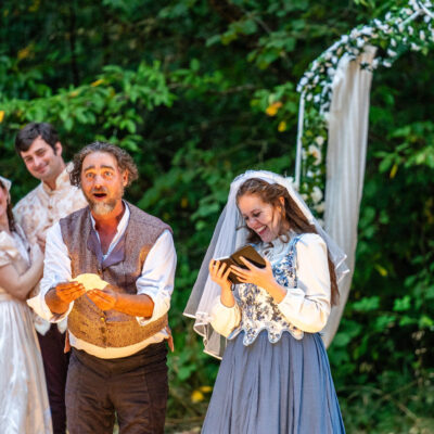 Pictured: Nicole Vernon as Lavinia, Sam Hagen as Marcus, and Patrick Bentley as Titus, in 2009’s Titus Andronicus