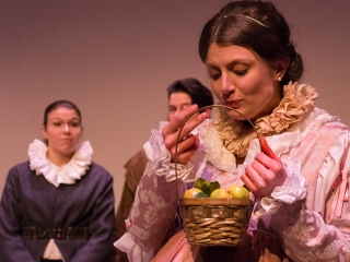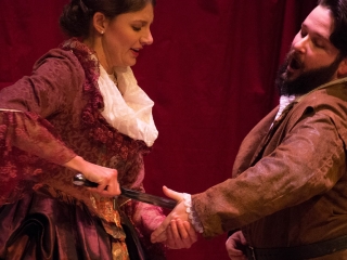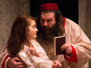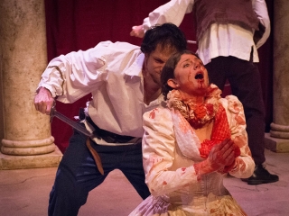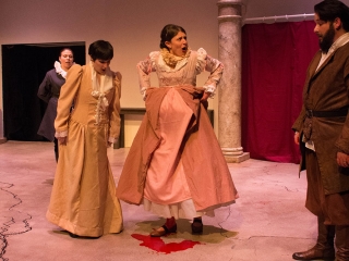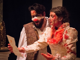 The Duchess of Malfi was penned by Jacobean playwright John Webster. It starts out well enough as a nice little love story. The Duchess secretly marries below her class, which displeases her brothers to no end. Power, corruption, cruelty, and revenge ensue. And blood. Lots and lots of blood.